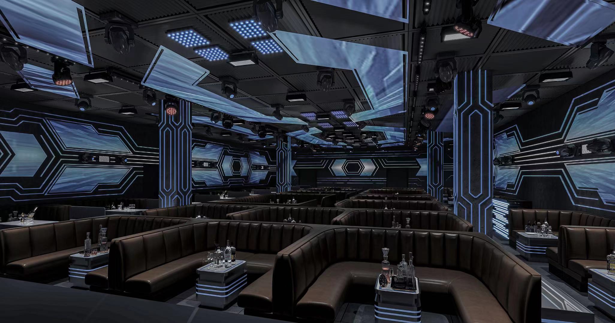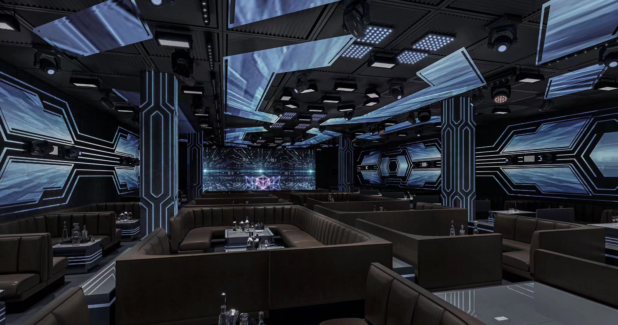 本案珠海唐潮派對酒吧,設計師用縱橫的線條交錯,藍白為主的霓虹色調,勾勒出了一個如夢似幻的集派對酒吧和派對KTV為一體的星際穿越空間。他以整體角度出發,輔以細節處點綴,使得整個設計交融一體、相輔相成,讓踏足于此的消費者能全身心地沉浸在一個如夢似幻的空間內,徹底放松自己。