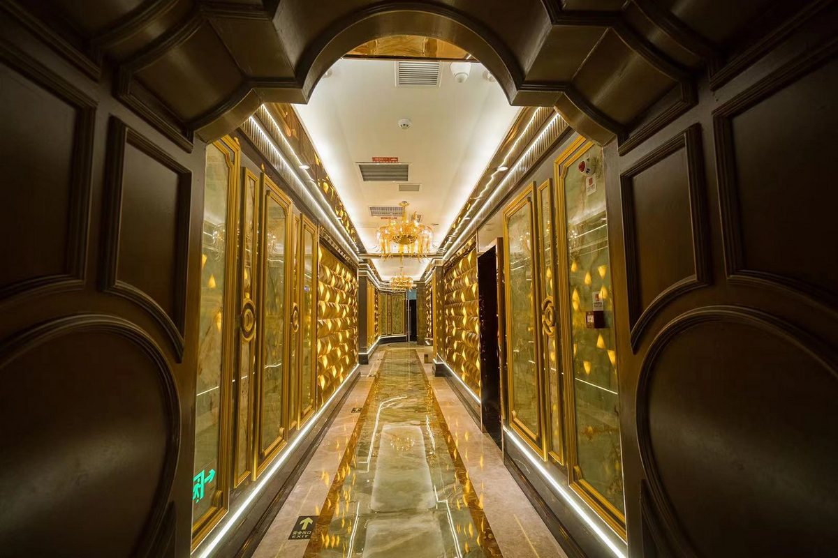 設計效果以布局上來看,整體以KTV在功能上實現娛樂、休閑、商務一體便捷式娛樂體驗;更貼近消費人群需求,色調上以金色營造靜謐氣氛,與幾何線條形成呼應,隨著空間內線條的流動,從細節出彰顯空間的精致與細膩質感,大廳右側通道,結合燈的光影效果,視覺上的沖擊整體體現出高端與時尚。
