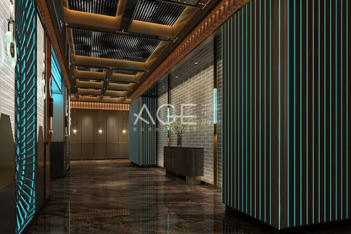 過道,整體為新中式的設(shè)計(jì),不同的線條勾勒出錯(cuò)落有序的層次感,燈光1主色調(diào)為孔雀藍(lán),配以金色系和灰色系,盡顯簡(jiǎn)單優(yōu)雅的高貴,輕奢的裝飾和孔雀藍(lán)基調(diào)的光影呈現(xiàn)出立體的效果。燈光2主色調(diào)金色,輔色為灰,裝飾采用線條,烘托出輕奢的華麗。