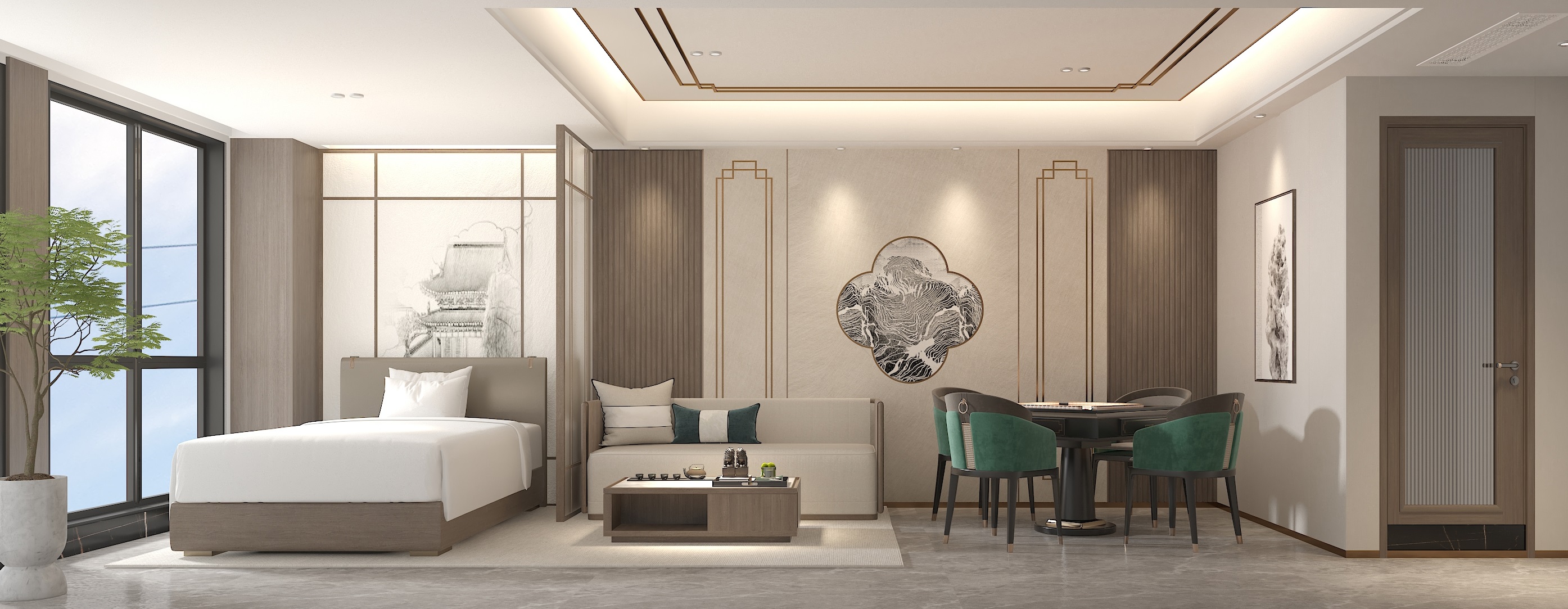 建筑的裝修設計風格必須與其所承載的功能相統一,這樣才能讓消費者在所處空間內放松身心,完全沉浸。譬如本案重慶茶室,作為現代茶室設計,必須在展現茶道意蘊的同時,貼合現代消費者較為清新淡雅的審美傾向,這樣才能避免茶室裝修設計過度金碧輝煌而顯得市儈庸俗,也避免太于經典古雅而讓消費者感到束縛壓抑。