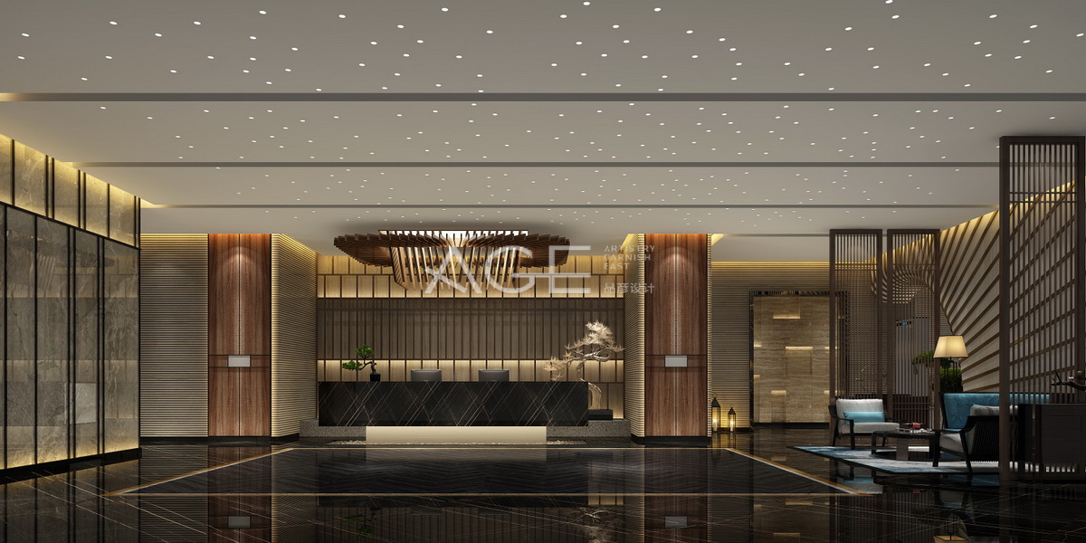 步入接待大廳給人感覺簡潔、淡雅、舒適、樸素,又不失大氣磅礴,整體設計和諧,營造出一種很立體的視覺體驗,又顯得人文與舒適性,幾個區域一目了然,線條和紋理搭配錯落有序。不同漂亮的大理石設計劃分出前臺區域、休息區域和通往內部走廊區域。左邊簡單大氣的木質材料和玻璃相結合的墻體,層次分明突顯獨有的魅力。這個對面是休息等待區,用四塊長方形落地屏風彰顯出自己的獨行特立,背景墻設計元素有條狀搭配的扇形,歐式簡單又舒適的沙發放在那里正等待它的客人。前臺區域主色調是明黃色,整體是一塊長方形的區域,而背景墻加入線條和方格的元素,給人簡潔又大方的感覺,兩側的墻體設計都的一樣的高貴大氣場。